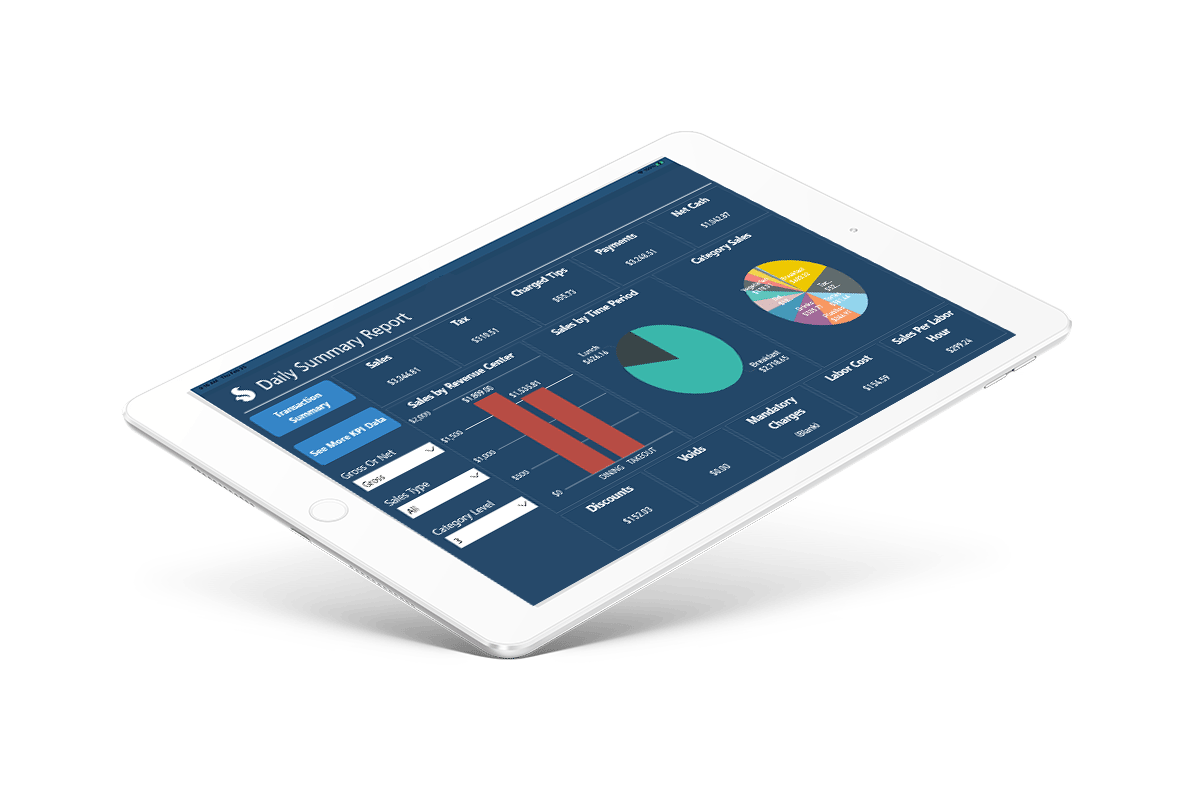 View sales trends, menu mix, sales by day or week.